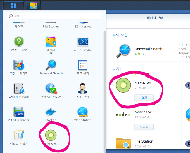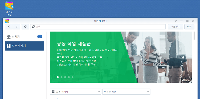 시놀로지 웹스테이션에 접속하여 패키지 센터를 엽니다.