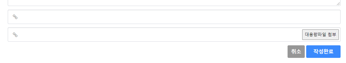 1. 해당 게시판 설정에서 링크를 입력할 수 있도록 설정합니다. 여러개인 경우 마지막 링크에 대용량첨부 버튼이 붙게 됩니다.