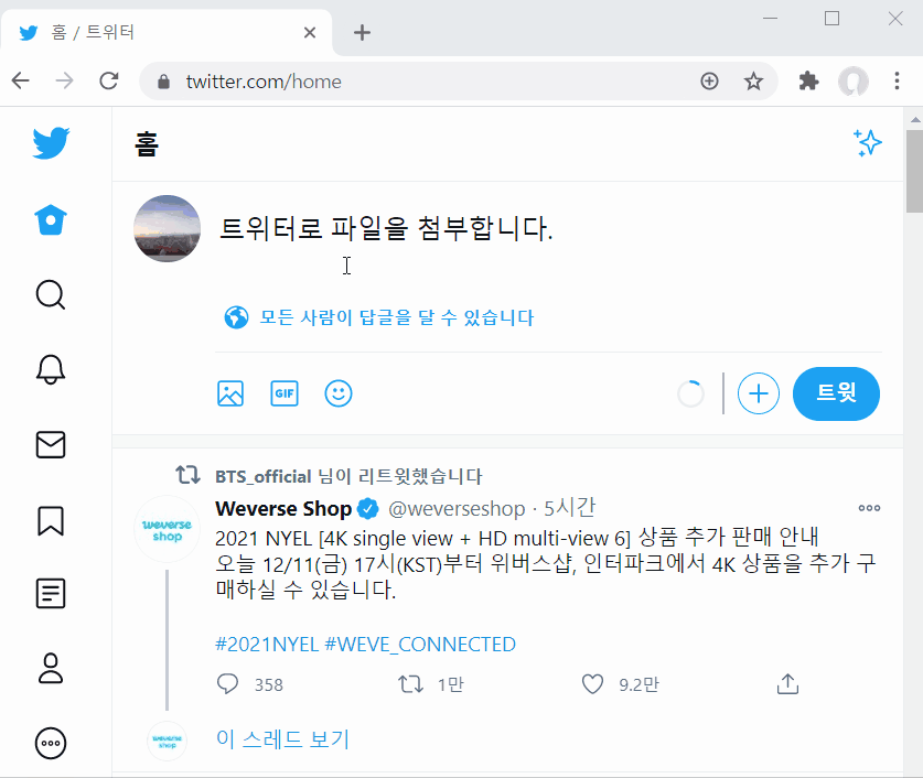 트위터에는 파일첨부를 할수 없기 때문에 외부 서비스를 쓸수 밖에 없는데요.