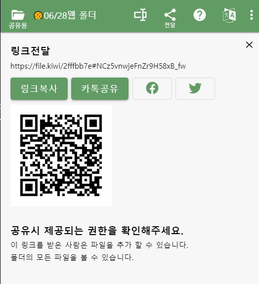 트윗하기를 하면 웹폴더 링크가 전달되고 이를 클릭하는 사람은 파일에 접근할수 있게 됩니다.
